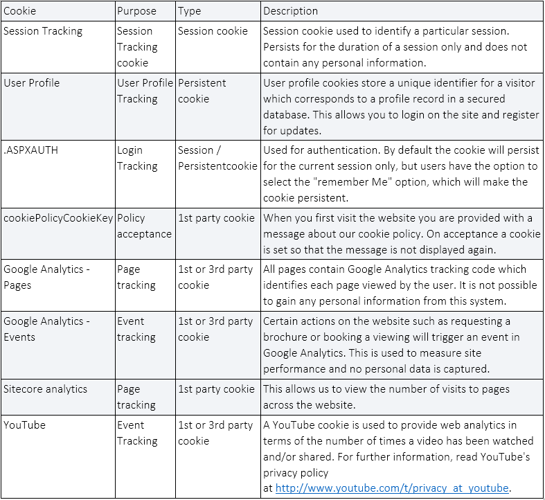 Cookies can help enhance your experience of our website, by letting you navigate between pages efficiently and showing you details that are related to your browsing history. However, you may consider that some of the information that we store is private, and we recognise that you may want to choose whether to receive them on your computer. To help you to decide whether to accept our cookies, we have listed all our cookies in the table below.
